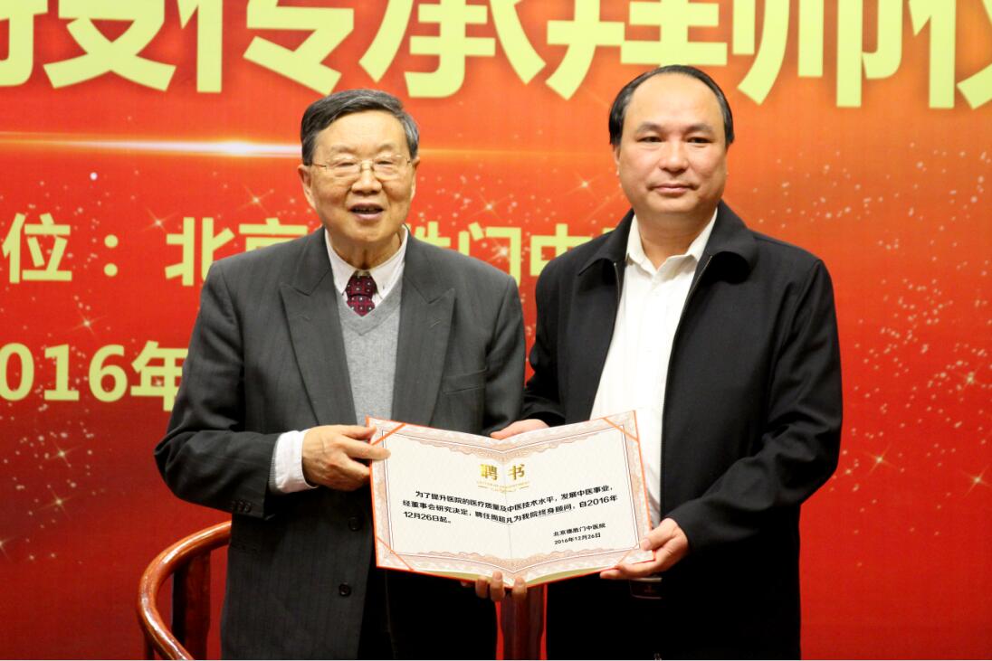 为了推动中医药事业发展,更好地继承整理老中医药专家的学术经验和技术专长,采取师承方式,打造一批高素质的中医药人才队伍,2016年12月26日,“周超凡教授传承拜师仪式”在北京德胜门中医院隆重召开。