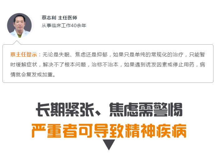 如果您有失眠、焦虑症、抑郁症、神经衰弱、强迫症、恐惧症、多神经官能症、植物神经功能紊乱等方面的疾病问题想要咨询,长按下方图片二维码,立即向蔡志利主任提问!